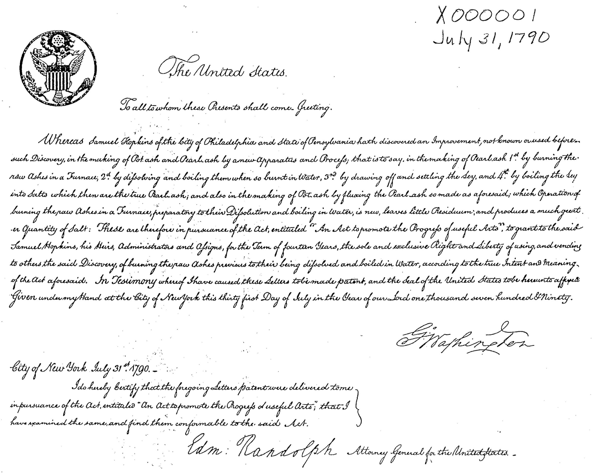 Inventor Samuel Hopkins becomes the first to be issued a U.S. patent (for an improved method of maki
