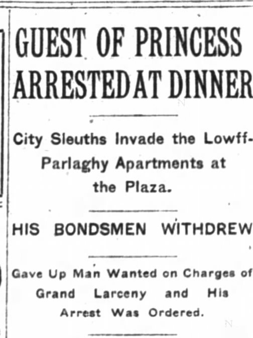 Guest of Princess Arrested at Dinner