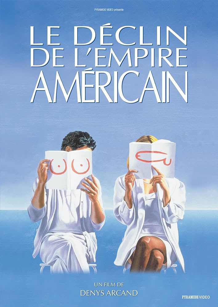 Denys Arcand’s films are mentioned in the long audio. Here is the poster for Le Déclin de L’Empire Américain released in 1986.
